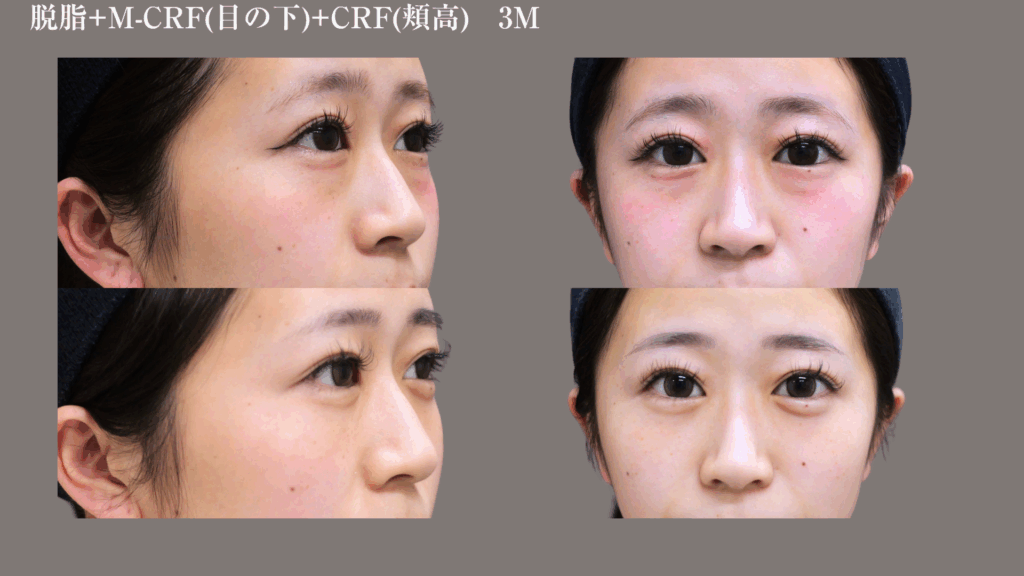 写真のゲストは脱脂と脂肪注入(目の下、頬高)で膨らみと色味を同時に改善しました。