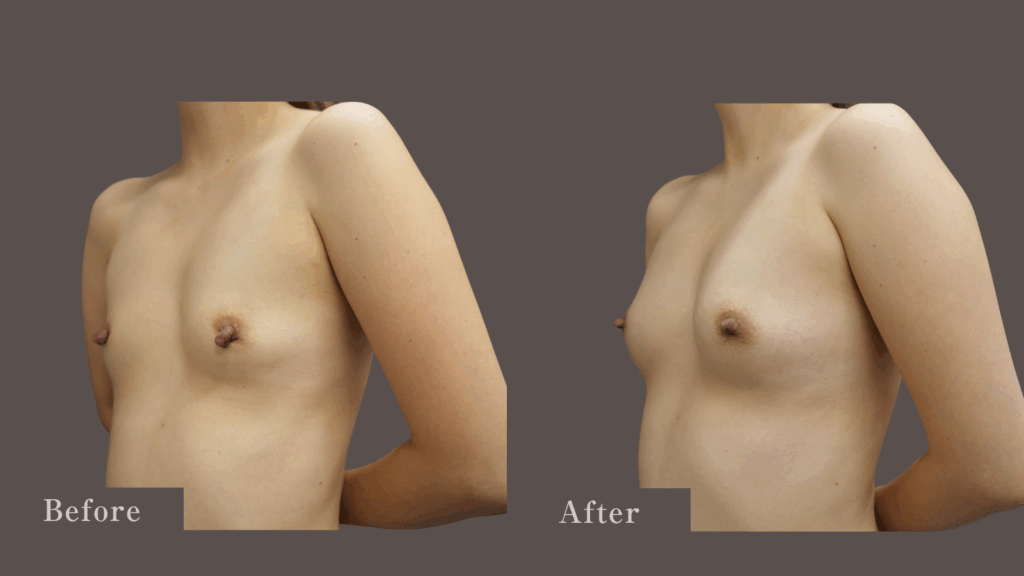 また乳頭の下垂も改善したことで、バスト全体が上向いた印象になりました。