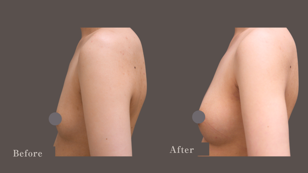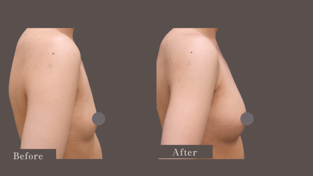 また、下の写真のように、横から見ても高さのある綺麗なバストに変化しました。